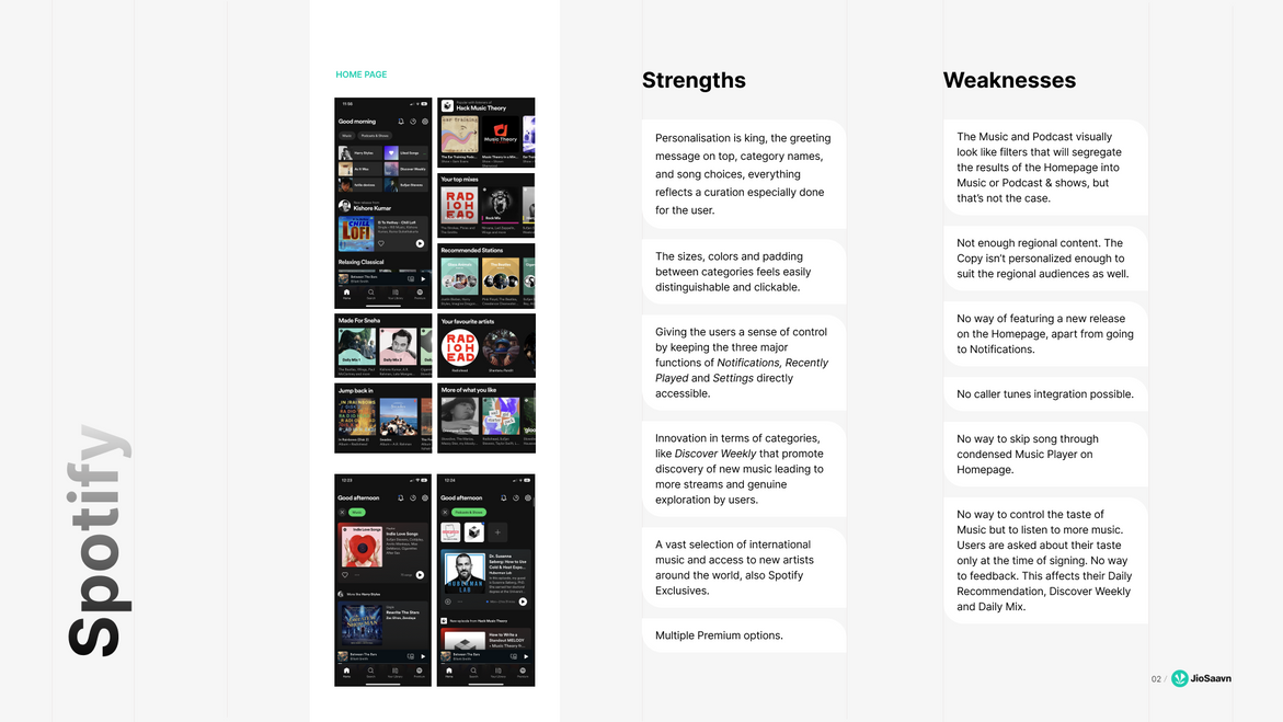 By analyzing leading music streaming apps, several design opportunities emerged for JioSaavn, like,